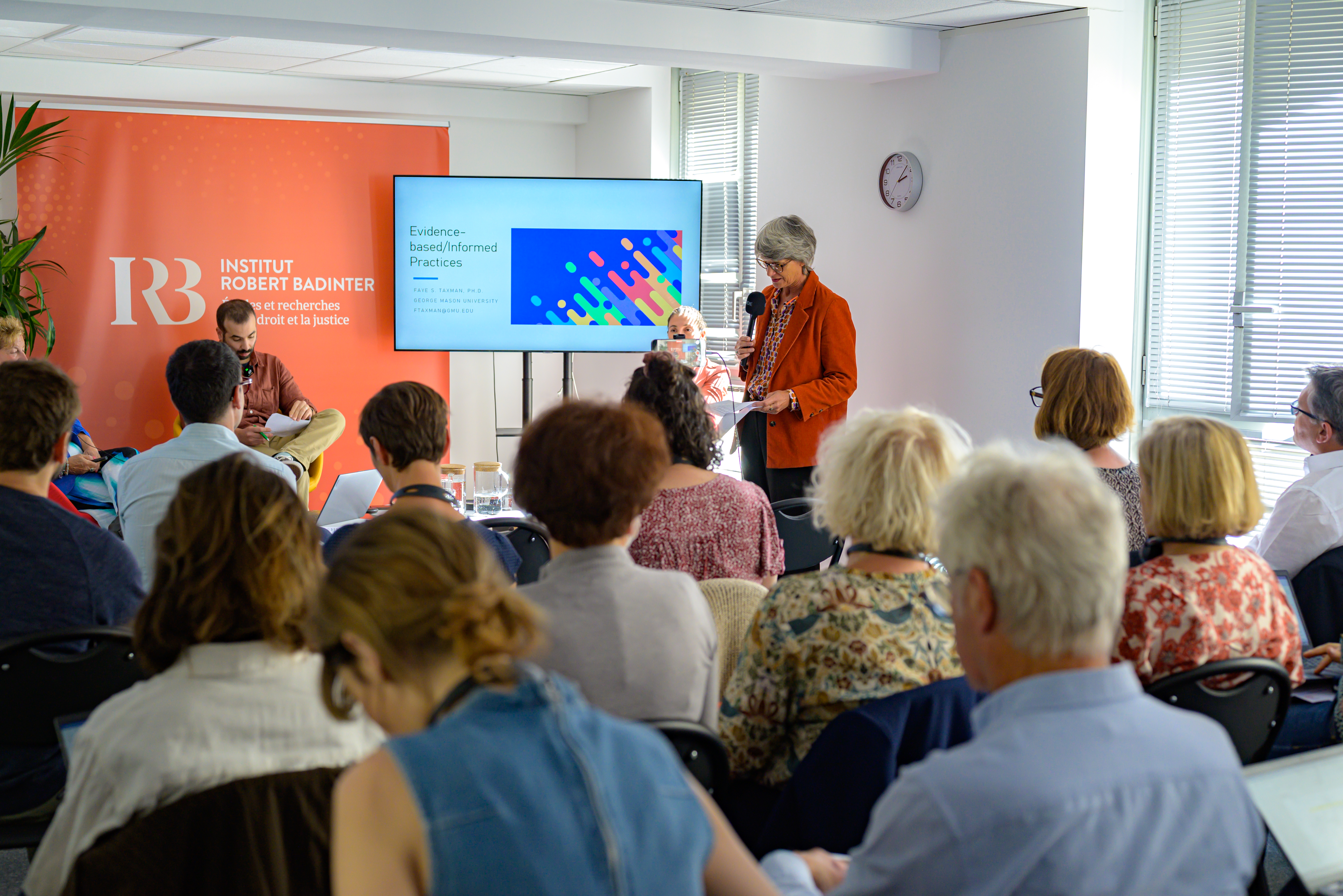 Le 9 septembre 2025, l’Institut Robert Badinter a eu l’honneur de recevoir la professeure américaine Faye Taxman à l’université George Mason (Etats-Unis), éminente spécialiste des pratiques correctionnelles fondées sur les données probantes (evidence-based practices). Devant un large public de professionnels de la justice et du champ pénitentiaire, elle a montré combien la recherche scientifique peut transformer l’exécution des peines, contribuer à réduire la récidive et mieux articuler santé et justice. Son intervention a été enrichie par les analyses croisées de Massil Benbouriche, professeur des universités et maître de conférences en psychologie et justice à l’université de Lille et d’Anaïs Tschanz, docteure en criminologie et enseignante-chercheuse au Centre interdisciplinaire de recherche appliquée au champ pénitentiaire (CIRAP de l’Ecole Nationale d’Administration Pénitentiaire (ENAP).