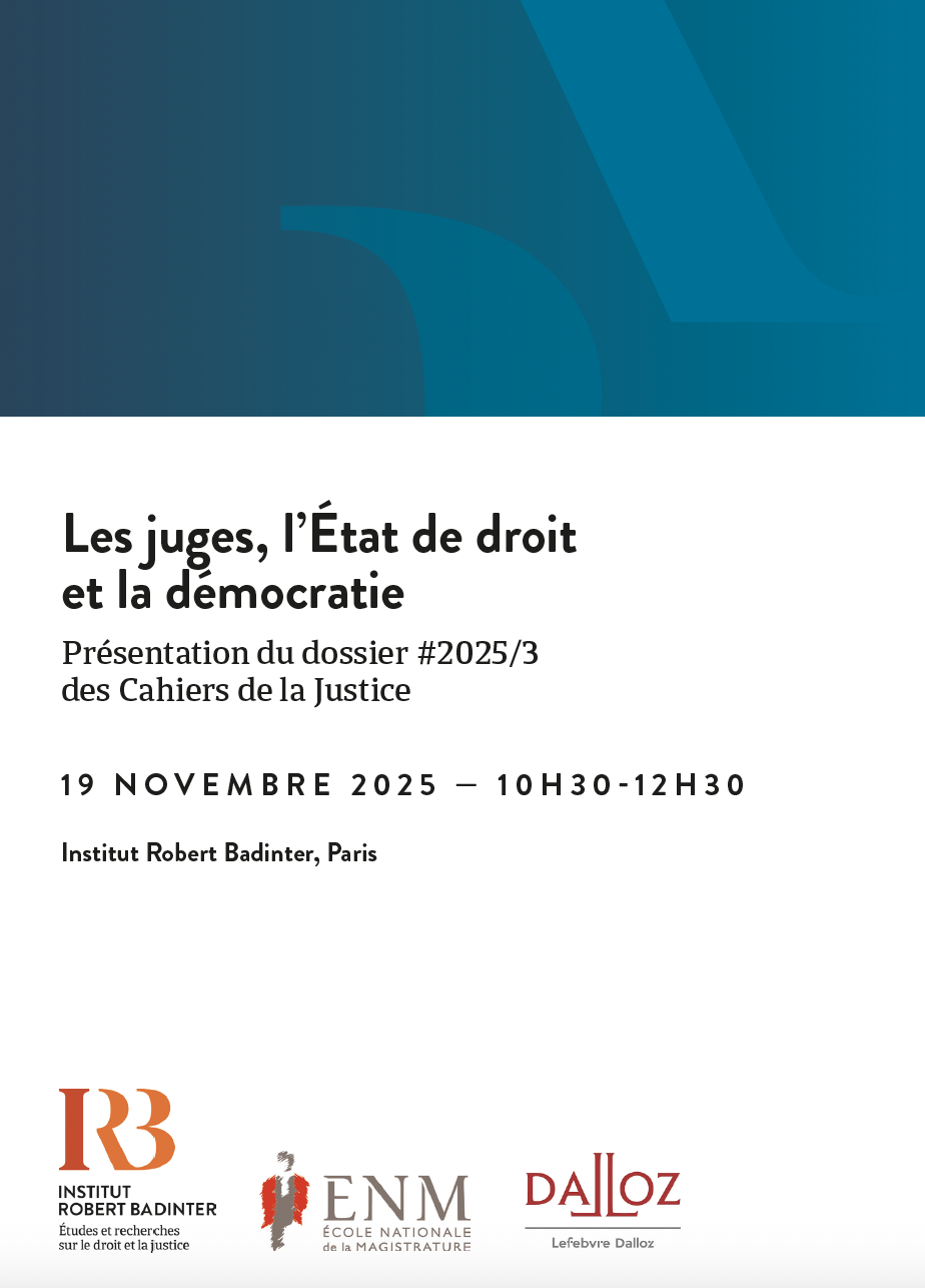 L’Institut Robert Badinter, l’Ecole nationale de la Magistrature (ENM) et les Cahiers de la Justice vous invitent à la présentation du dossier 2025/3 des Cahiers de la Justice, consacré au thème « Les juges, l’Etat de droit et la démocratie ».